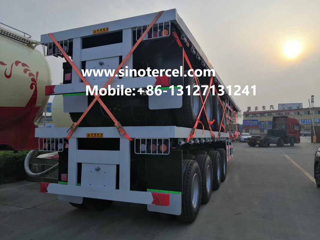 70t Flat Bed Semi Trailer 4 Axles White 70ft Flat Bed Semi Trailers 4 Axles Flatbeds For Semi Trucks White Best Semi Truck Flatbed Trailer with 4 Axles and 12pcs Container Lock Product Description: Flat Bed Semi Trailer - The Ultimate Solution for Heavy Duty Transportation Are you looking for a flat bed semi trailer for sale? Look no further! Our flat bed semi trailer is the perfect choice for transporting heavy-duty goods efficiently and safely. Whether you need to transport construction materials, machinery, or other large items, our semi truck and flatbed trailer for sale is the ideal solution. Main Beam: 500mm The main beam of our flat bed semi trailer is 500mm, providing the necessary stability and strength for carrying heavy loads. This ensures that your goods are transported safely without any risk of damage. Overall Dimension: 12500mm * 2500mm *1530mm With an overall dimension of 12500mm*2500mm*1530mm, our flat bed semi trailer offers ample space for loading large and heavy items. This allows you to transport more goods in a single trip, saving time and resources. Warranty: 1 Year We stand behind the quality of our products and offer a 1 year warranty on our flat bed semi trailer. This gives you peace of mind and ensures that any defects or issues will be taken care of promptly. Main Material: Carbon Our flat bed semi trailer is made of high-quality carbon material, known for its durability and strength. This ensures that our trailer can withstand heavy loads and harsh road conditions, making it a reliable choice for your transportation needs. Upper Plate: 14mm The upper plate of our flat bed semi trailer is 14mm thick, providing a sturdy and stable platform for your goods. This also makes it suitable for transporting heavy machinery and equipment without any risk of damage. Flatbed Trailer with Ramp for Sale In addition to our standard flat bed semi trailer, we also offer a flatbed trailer with a ramp for sale. This ramp makes it easier to load and unload goods, especially those with wheels, such as cars or forklifts. Heavy Duty Flatbed Trailer Our flat bed semi trailer is designed to handle heavy-duty transportation needs. With its strong and durable construction, it can carry a variety of goods, making it the perfect choice for industrial and commercial use. Don't settle for less when it comes to transporting your heavy goods. Choose our flat bed semi trailer for sale and experience the convenience and reliability of our product. Contact us now to learn more and get a quote. Features: • Product Name: Flat Bed Semi Trailer • Demission Of Flat: 13000*3000*6mm • Warranty: 1 Year • Container Twist Lock: 12pcs Container Lock • Upper Plate: 14mm • Overall Dimension: 12500mm * 2500mm *1530mm • Suitable for: Semi truck flatbed trailer • Function: Flatbed trailer for transporting goods and materials • Features: High load-bearing capacity, durable construction, easy to load and unload • Design: Sleek and modern design, optimized for efficiency and safety • Usage: Ideal for commercial and industrial use, suitable for long distance transportation • Benefits: Increases productivity and reduces transportation costs • Additional Features: Can be customized according to specific needs and requirements • Availability: Flatbed trailer semi truck for sale Technical Parameters: Category Technical Parameter Axle 4 Axles Main Beam 500mm Overall Dimension 12500mm * 2500mm *1530mm Main Material Carbon Container Twist Lock 12pcs Container Lock Air Chambers 6 Sets Floor 3mm Diamond Steel Plate Hs Code 87163910 Warranty 1 Year Middle Plate 6mm Semi Truck and Flatbed Trailer for Sale: This flat bed semi trailer with 3 axles is perfect for hauling heavy loads and is available for purchase. Semi Truck Flatbed Trailer: The 18 wheeler flatbed trailer is made with high quality carbon material and has an overall dimension of 12500mm * 2500mm *1530mm. Applications: SINOTERCEL Flat Bed Semi Trailer Perfect Solution for Your Flatbed Needs Are you looking for a reliable and high-quality flatbed semi trailer for your transportation business? The SINOTERCEL Flat Bed Semi Trailer is the perfect solution for all your flatbed needs. Designed and manufactured by SINOTERCEL, a leading brand in the transportation industry, this flatbed semi trailer is the best choice for transporting large and heavy goods. • Brand Name: SINOTERCEL • Model Number: LML9400TPB • Place of Origin: CHINA • Standard: ISO/CCC/SGS • Main Material: Carbon • Hs Code: 87163910 • Main Beam: 500mm • Warranty: 1 Year Perfect for Various Applications The SINOTERCEL Flat Bed Semi Trailer is suitable for a wide range of applications. Its versatile design and sturdy construction make it ideal for transporting construction materials, heavy machinery, and other large goods. It is also commonly used for transporting oversized cargo, such as wind turbine blades and steel beams. Efficient and Durable The flatbed semi trailer is designed for efficiency and durability. Its lightweight carbon material ensures that it can handle heavy loads while also being fuel-efficient. The main beam, with a width of 500mm, provides maximum support and stability for your cargo, ensuring a smooth and safe transportation process. Wide Range of Options We understand that every transportation business has different needs and requirements. That's why we offer a wide range of options for our flatbed semi trailer. You can choose from different sizes, load capacities, and specifications to find the perfect fit for your business. Easy to Use and Maintain The SINOTERCEL Flat Bed Semi Trailer is designed to be user-friendly and easy to maintain. Its simple design makes it easy to load and unload cargo, and the durable materials ensure it can withstand harsh weather conditions and rough terrains. With proper maintenance, this flatbed semi trailer can last for many years, providing you with a reliable and long-term solution for your transportation n